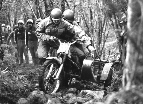 Adrian Clarke and passenger Mick Bailey in action on their Montesa/BKS outfit – Photo: Mike Rapley