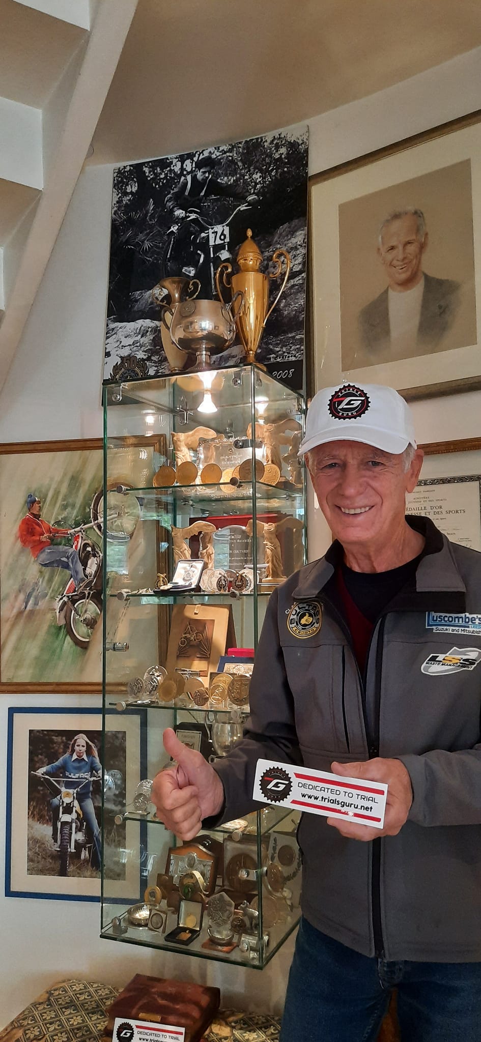 Patrick Comerford is a Trials Guru VIP: “I’m very honoured to receive this cap from Trials Guru, which I humbly accept on behalf of the Comerford family and all those who worked at or rode with the support of Comerford’s of Thames Ditton.”