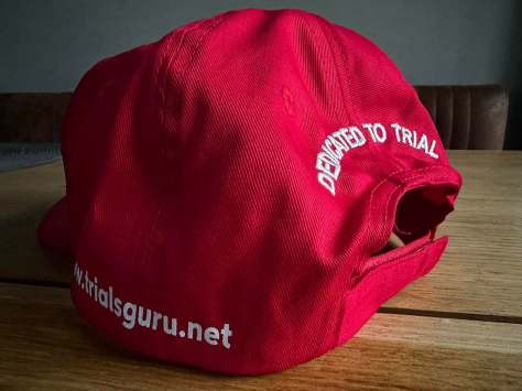 We then implemented the idea and had produced exclusively for the website, red caps with the Trials Guru logo on the front and the slogan embroidered across the back: ‘DEDICATED TO TRIAL‘.