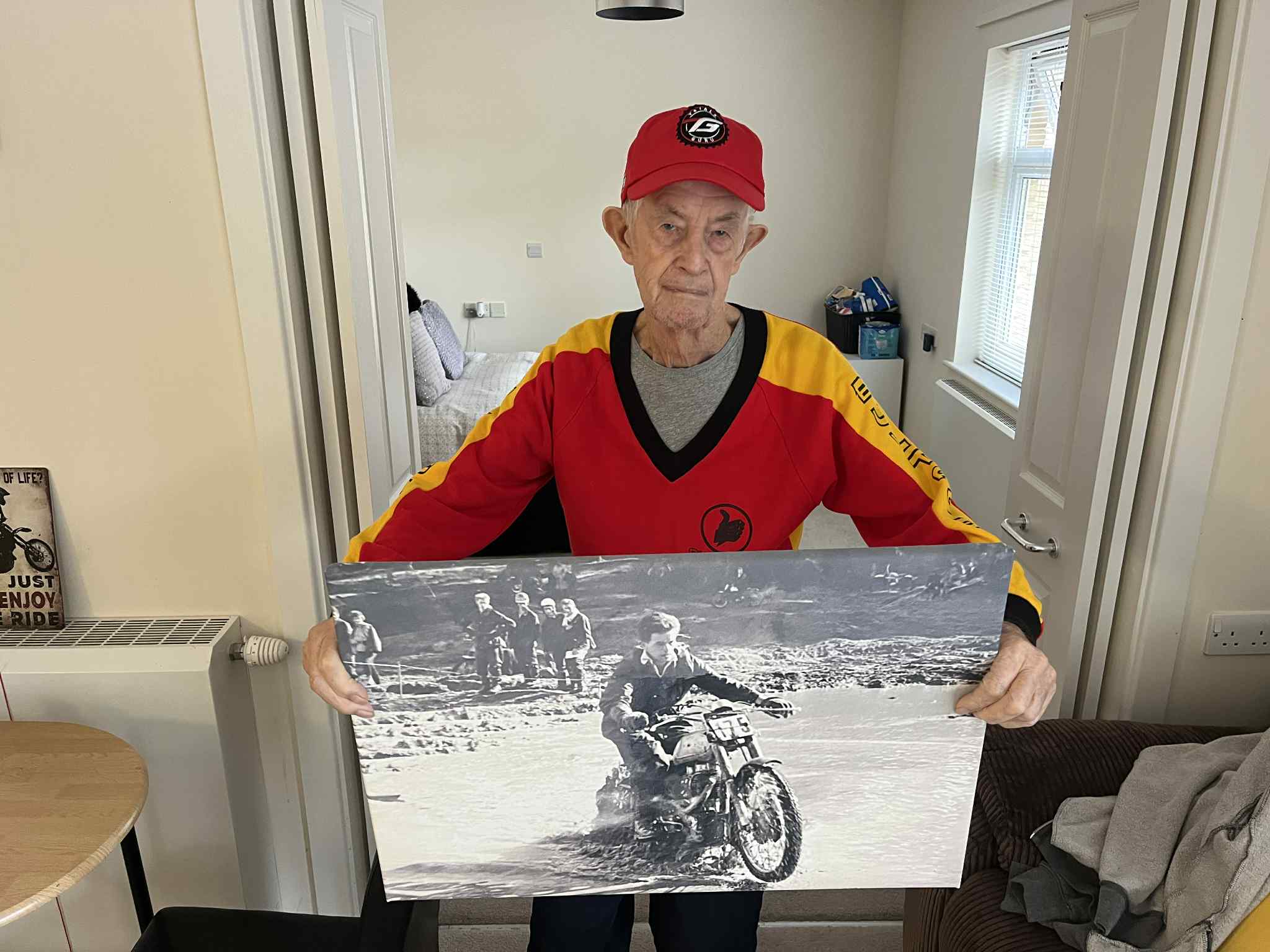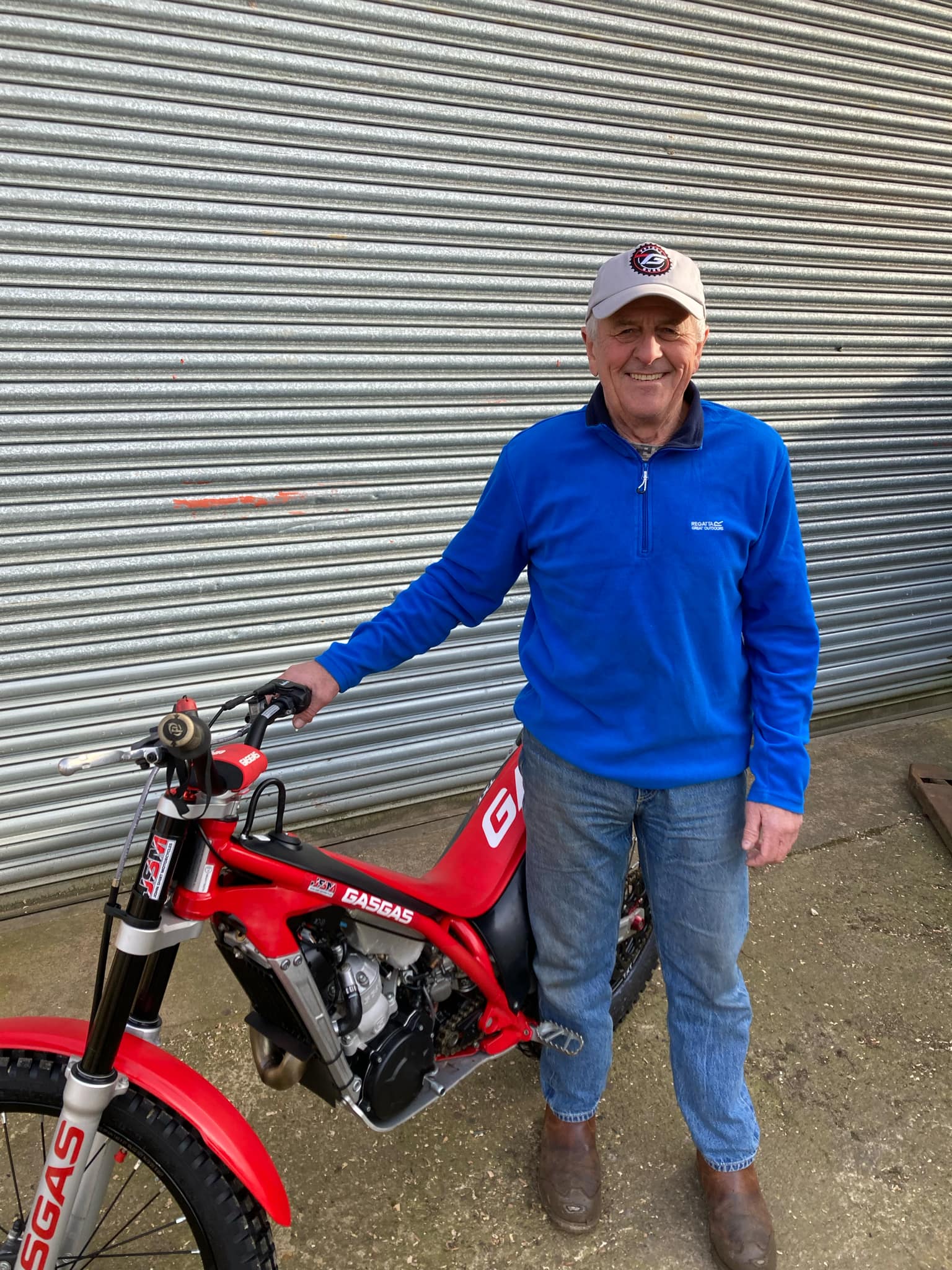 Sammy Miller MBE – outside his world famous museum at Bashley, New Milton, Hampshire with his Trials Guru ‘VIP Winners’ special edition cap. (Photo: Sammy Miller Museum)